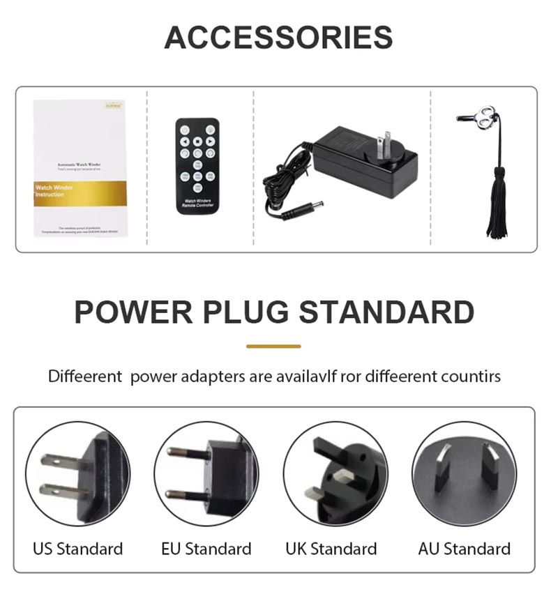 The 12 space watch winder supports all automatic (self-winding) watches, including Rolex, Omega, TAG Heuer, Longines, Breitling, and more.