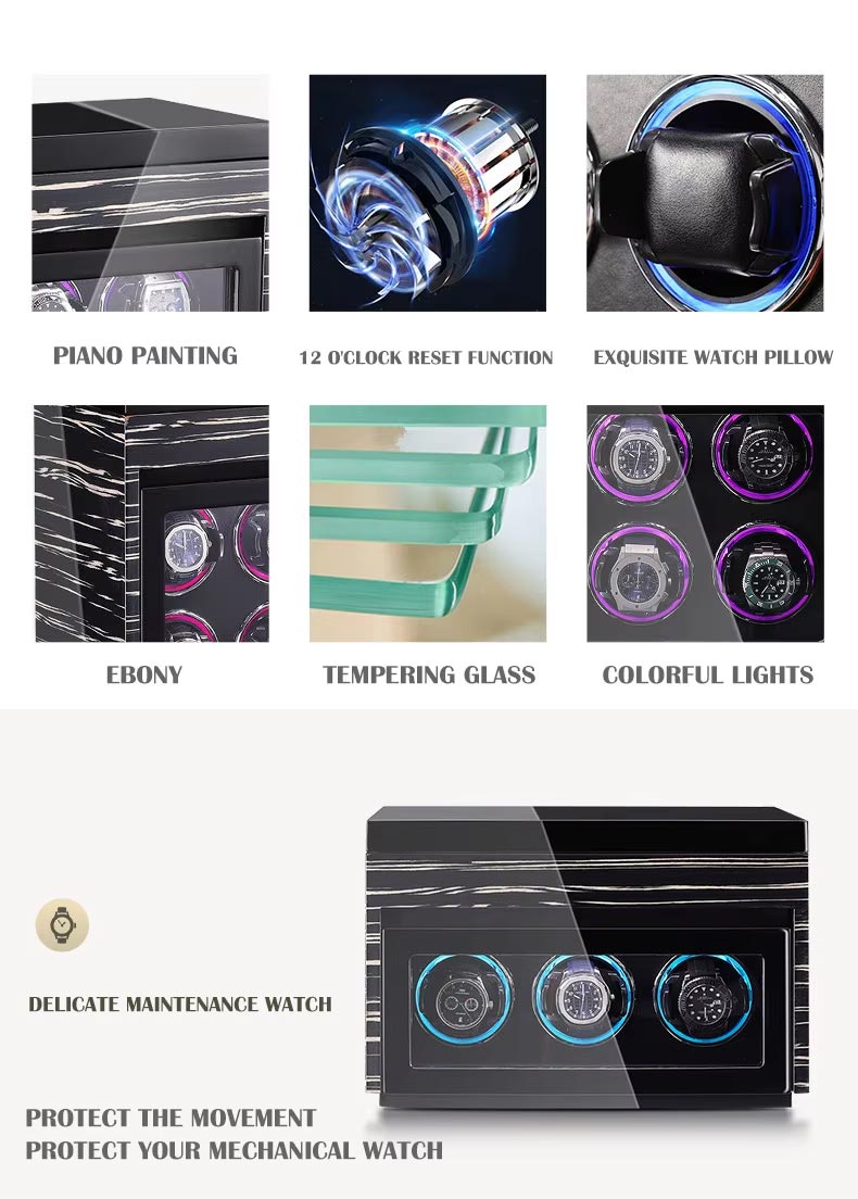 Premium Craftsmanship: Constructed with a luxurious wooden case, high-gloss piano finish, and glass display window, this winder complements any modern interior while showcasing your watch collection.