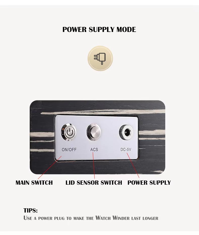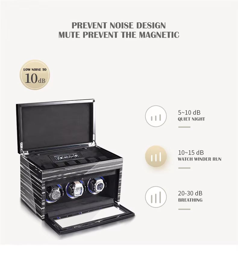 Three Watch Winder Capacity: Individually programmable rotors allow you to set customized TPD (turns per day) and rotation direction for each watch, ensuring optimal winding performance.